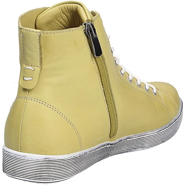 Sportiver Damenschnürschuh aus dem Hause Andrea Conti aus einem feinen hochwertigem Glattleder.Dieses Leder verleiht einen edlen Look und ist gut zu pflegen. Das exzellente Innenleben aus bestem Leder gibt Ihnen ein erholsames Gefühl an langen Tagen. Die lederbezogene, gepolsterte Einlegesohle ist herausnehmbar.Somit können eigene Einlagen verwendet werden. Geschnitten ist der Schuh für etwas breitere Füße (Weite G). Der Absatz ist durchgehend flach ,die aus einem weichen PU-Material bestehende Laufsohle schont die Gelenke und federt jeden Tritt optimal ab. Eine praktische Schnürung vollendet den klassischen Look und erleichtert Ihnen den Einstieg. Durch die runde Schuhspitze wirkt der Schuh dezent am Fuß und bietet genügend Platz für die Fußzehen. Die Schuhgröße fällt regulär aus.