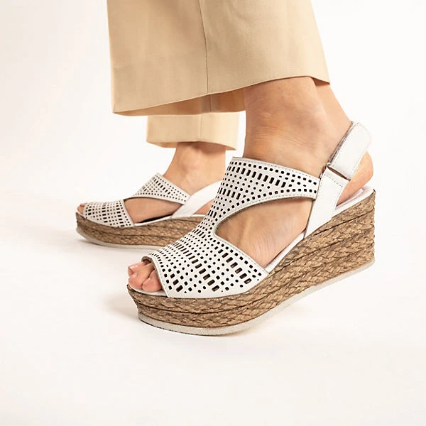 Ergänzen verschiedene Outfits: Diese stilsicheren Keilsandaletten aus dem Hause Andrea Conti. Das Obermaterial zeichnet sich durch das feine Leder aus. Der Keilabsatz sorgt für eine modische Note. Eine optimale Anpassung an den Fuß ist durch den Klettverschluss kein Problem. Die Decksohle besteht aus natürlich atmungsaktivem Leder, das ein angenehmes Trageerlebnis begünstigt.