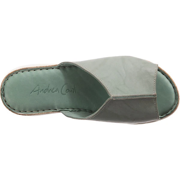 Für ein bequemes Laufgefühl: Die Komfort-Pantoletten der Marke Andrea Conti. Für ein angenehmeres Tragegefühl besteht das Fußbett aus Echtleder. Der dezente Keilabsatz bietet einen modischen Auftritt. Es handelt sich um ein Modell zum einfachen und schnellen Hineinschlüpfen. Die Schuhe bestechen dank des Obermaterials aus echtem, hochwertigem Leder.