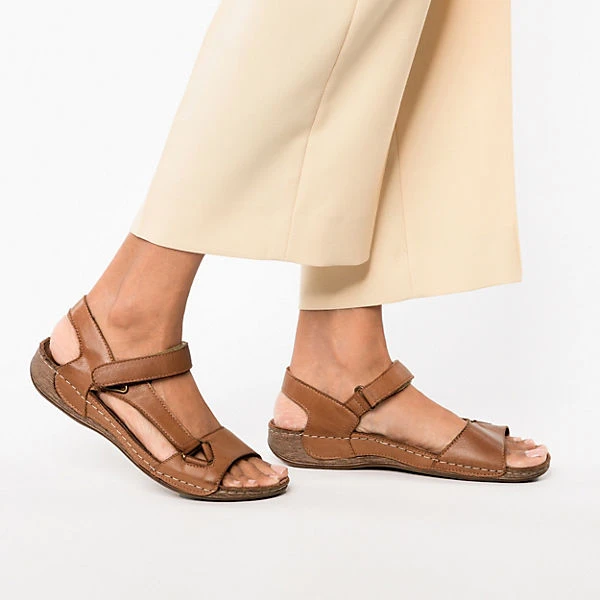 Die Sandalen der Marke Andrea Conti sorgen stets für einen schicken Auftritt. Der Keilabsatz verleiht eine zusätzliche dekorative Note. Das Modell besteht aus hochwertigem Echtleder. Durch den Klettverschluss lässt sich der Schuh optimal an den Fuß anpassen.