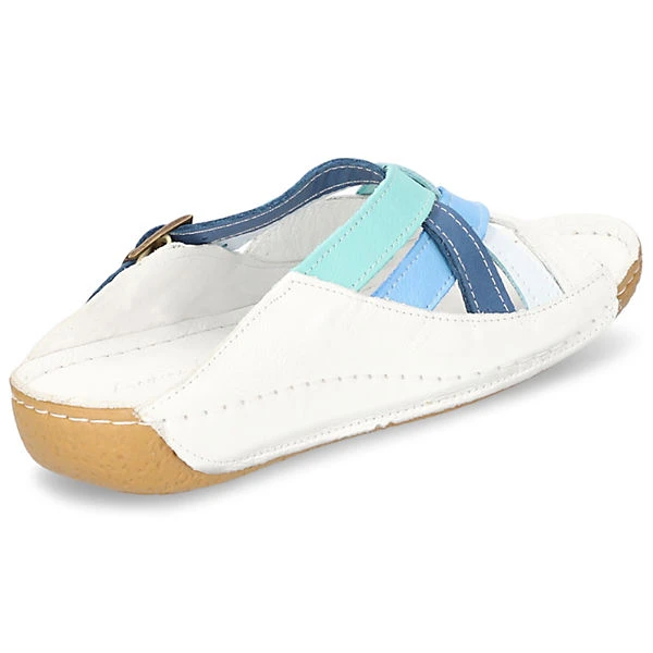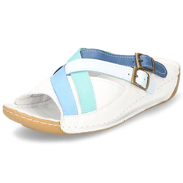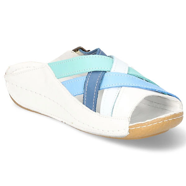 Andrea Conti Damen Sandalen Blau/Weiß Leder – 2 verstellbare Schnallen zur optimalen Anpassung – gekreuzte Riemen über dem Spann – gepolsterte Leder-Decksohle – flexible, rutschhemmende Laufsohle