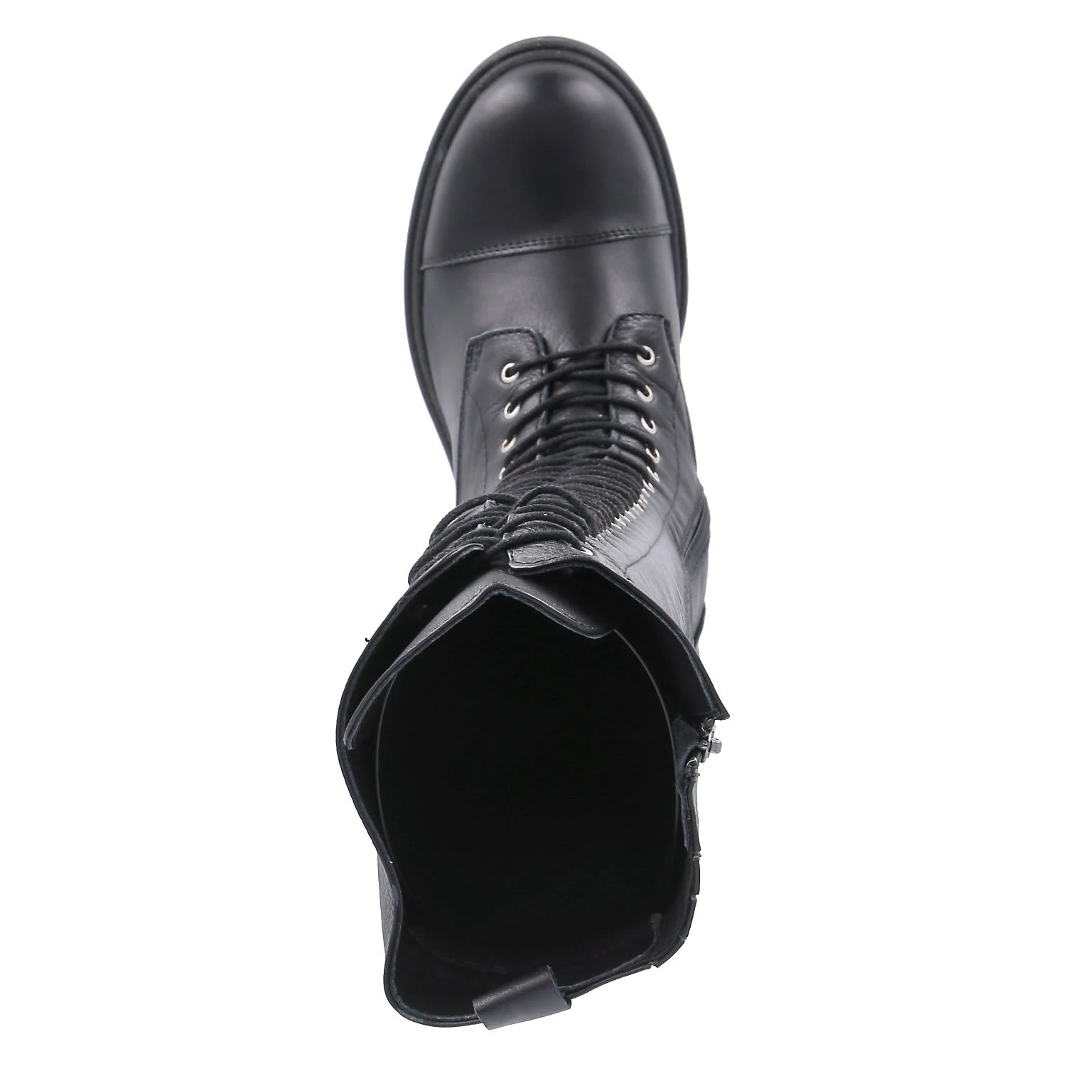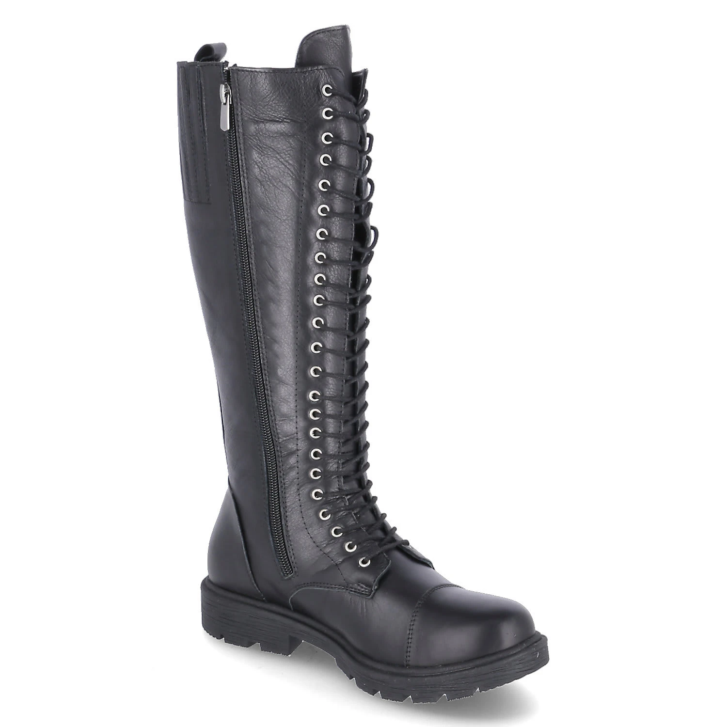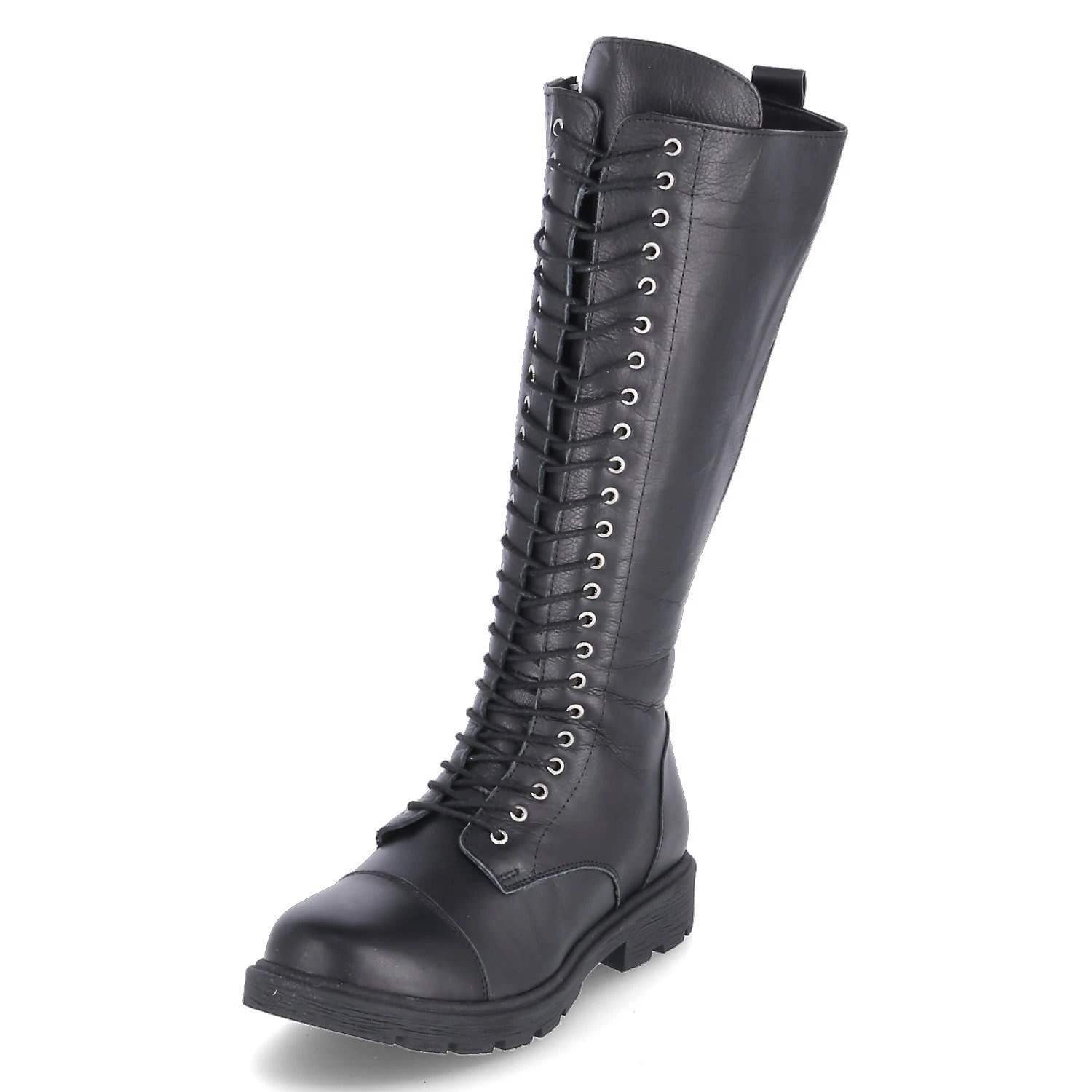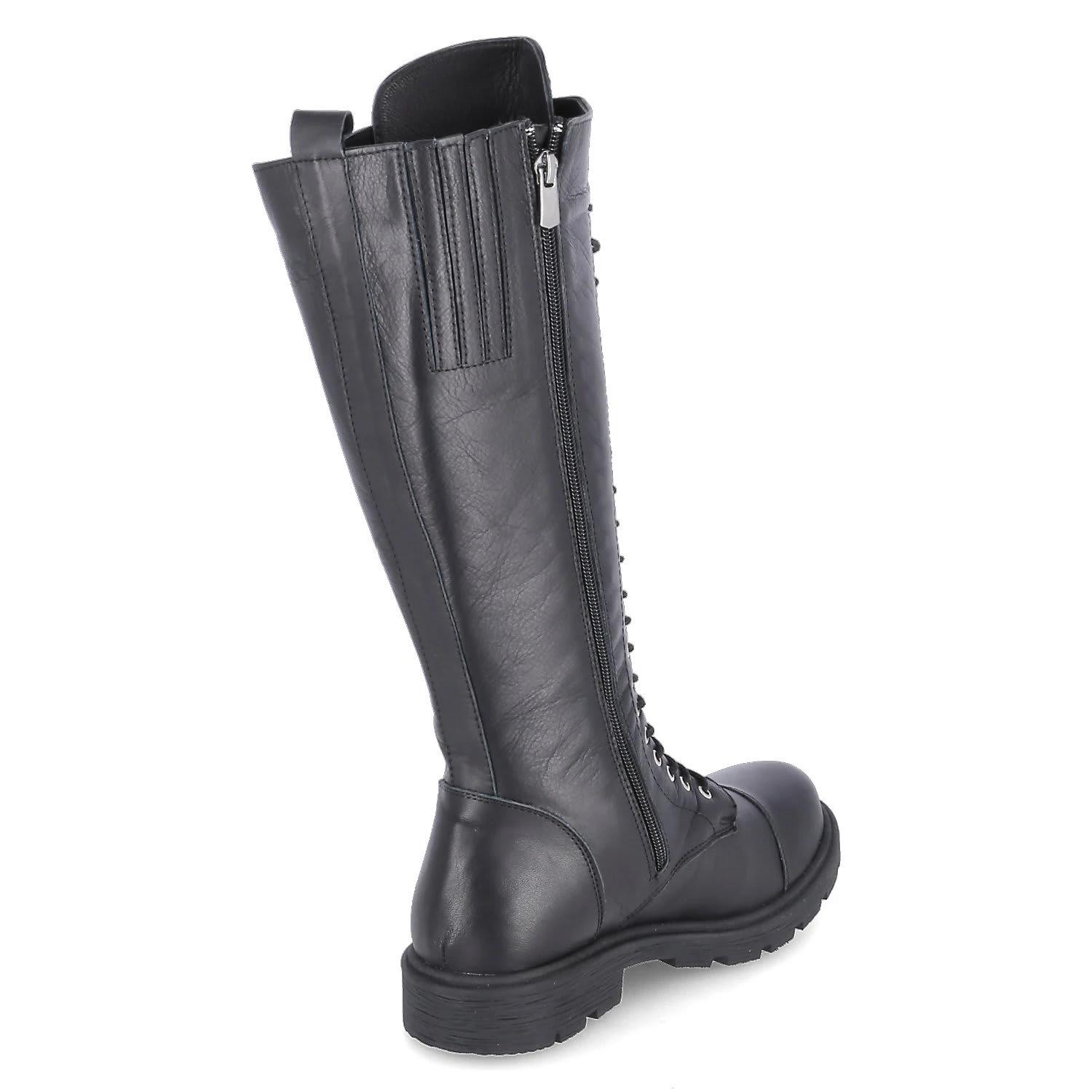 Andrea Conti Damen Schnürstiefel Schwarz Glattleder -Schnürung und Reißverschluss – variabler Oberschaft durch Elastikeinsätze – Anziehlasche -verstärkter Zehen- und Fersenbereich – leichtes Mikrofaserfutter – gepolsterte und herausnehmbare Leder-Decksohle – flexible, rutschhemmende Laufsohle