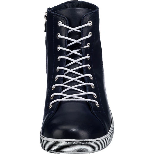 Sportiver Damenschnürschuh der Marke Andrea Conti aus einem feinen hochwertigem Glattleder.Dieses Leder verleiht einen edlen Look und ist gut zu pflegen. Ebenso glänzt das Modell durch eine weiche Lederausstattung. Die mit einem weichen Polster unterlegte lederbezogene Einlegesohle sorgt für ein angenehmes Fußklima, ist auswechselbar und somit für lose Einlagen geeignet. Die Schuhform ist ideal für normal weite Füße (Weite F). Der Absatz ist durchgehend flach ,die aus einem weichen PU-Material bestehende Laufsohle schont die Gelenke und federt jeden Tritt optimal ab. Die karree-förmige Schuhform hat zwei Vorteile: Sie wirkt sportlich und bietet einen angenehmen Tragecomfort für den Fuß und die Fußzehen. Die Schuhgröße fällt regulär aus.