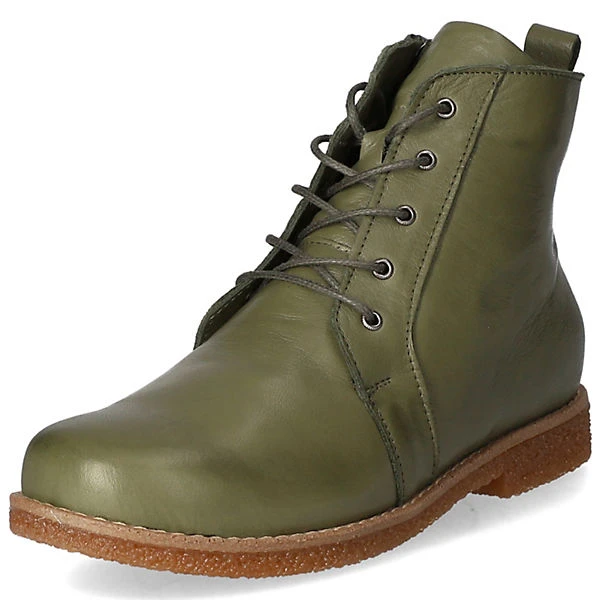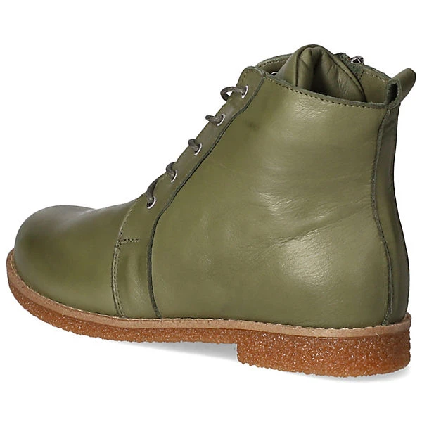 Andrea Conti Damen Schnürstiefeletten/ Ankle Boots Grün Glattleder – Schnürung plus Reißverschluss – verstärkter Zehen- und Fersenbereich – gepolsterte und herausnehmbare Leder-Decksohle – flexible, rutschhemmende Laufsohle – praktische Anziehlasche – ca. 2 cm Blockabsatz
