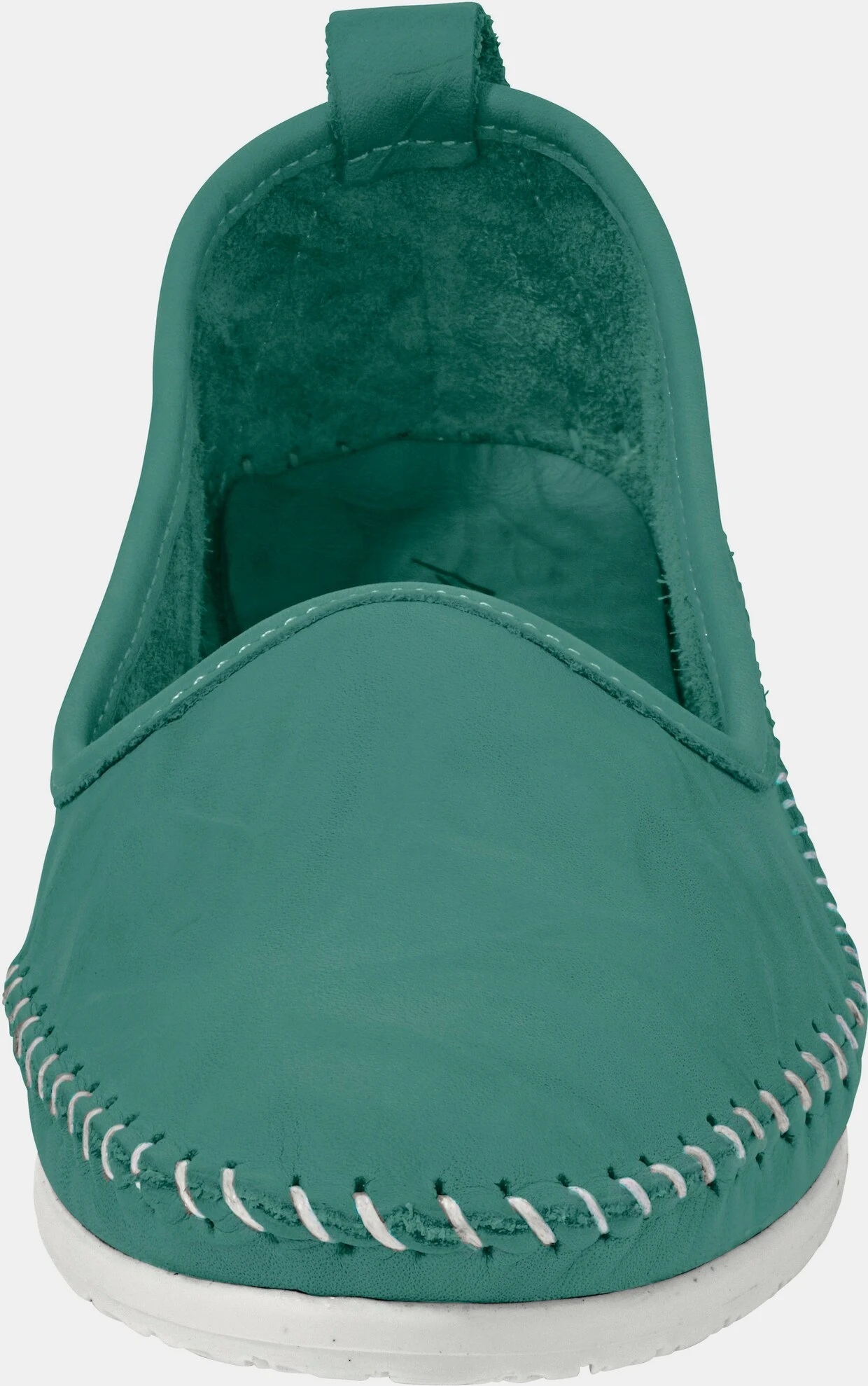 Slipper Weich, leicht und bequem, aus hochwertigem Rind-Nappaleder. Mit attraktiver Mokassin-Naht und offenen Kanten. Innensohle Leder. Flexible Gummi-Laufsohle.