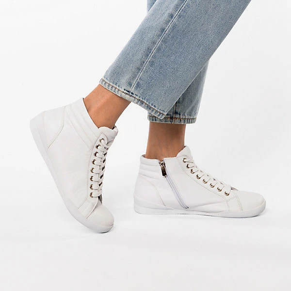 Diese praktischen High Sneakers von Andrea Conti eignen sich ideal zu vielen verschiedenen Anlässen. Das Modell ist aus hochwertigem Echtleder. Die Schuhe sind mit einem Reißverschluss ausgestattet. Für ein angenehmeres Trageerlebnis besteht das Fußbett aus echtem Leder.