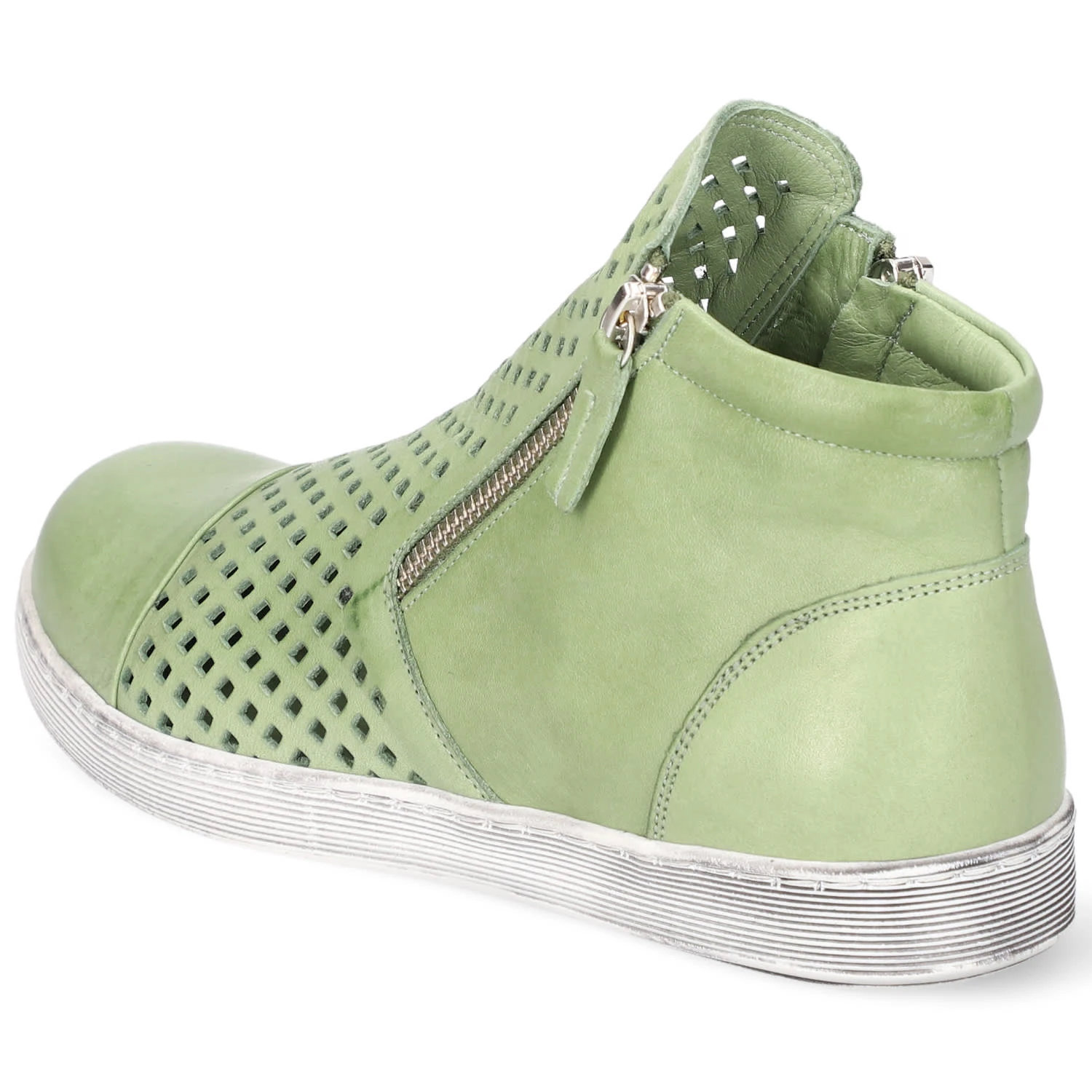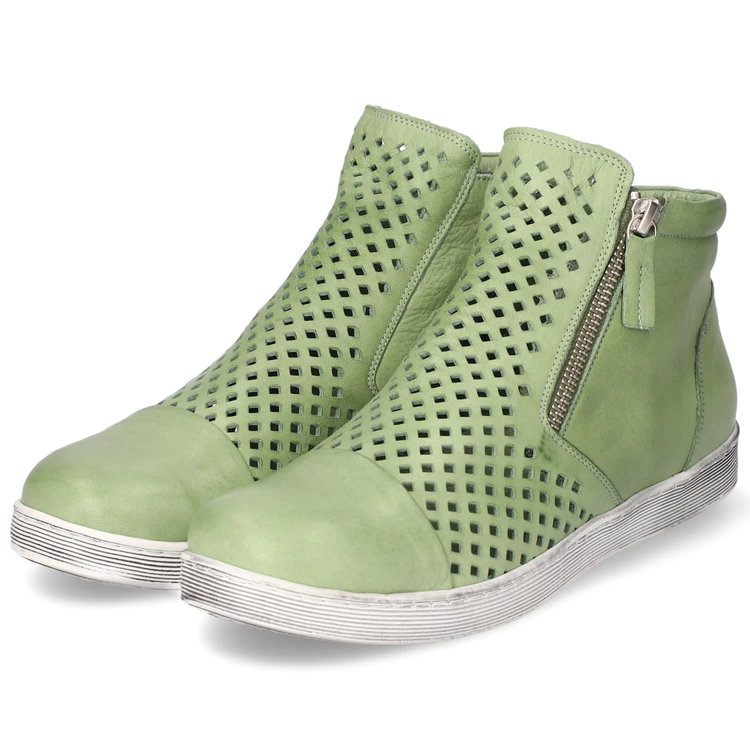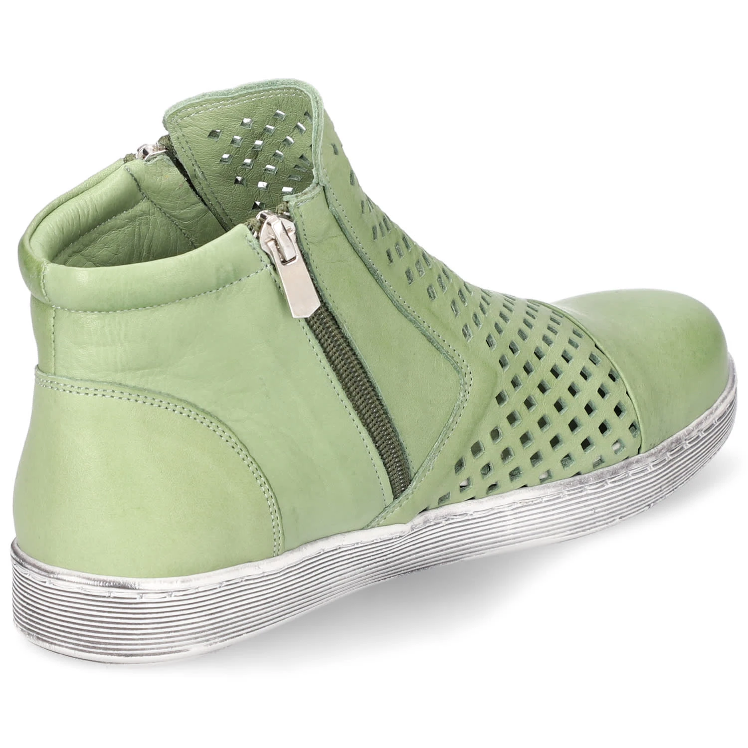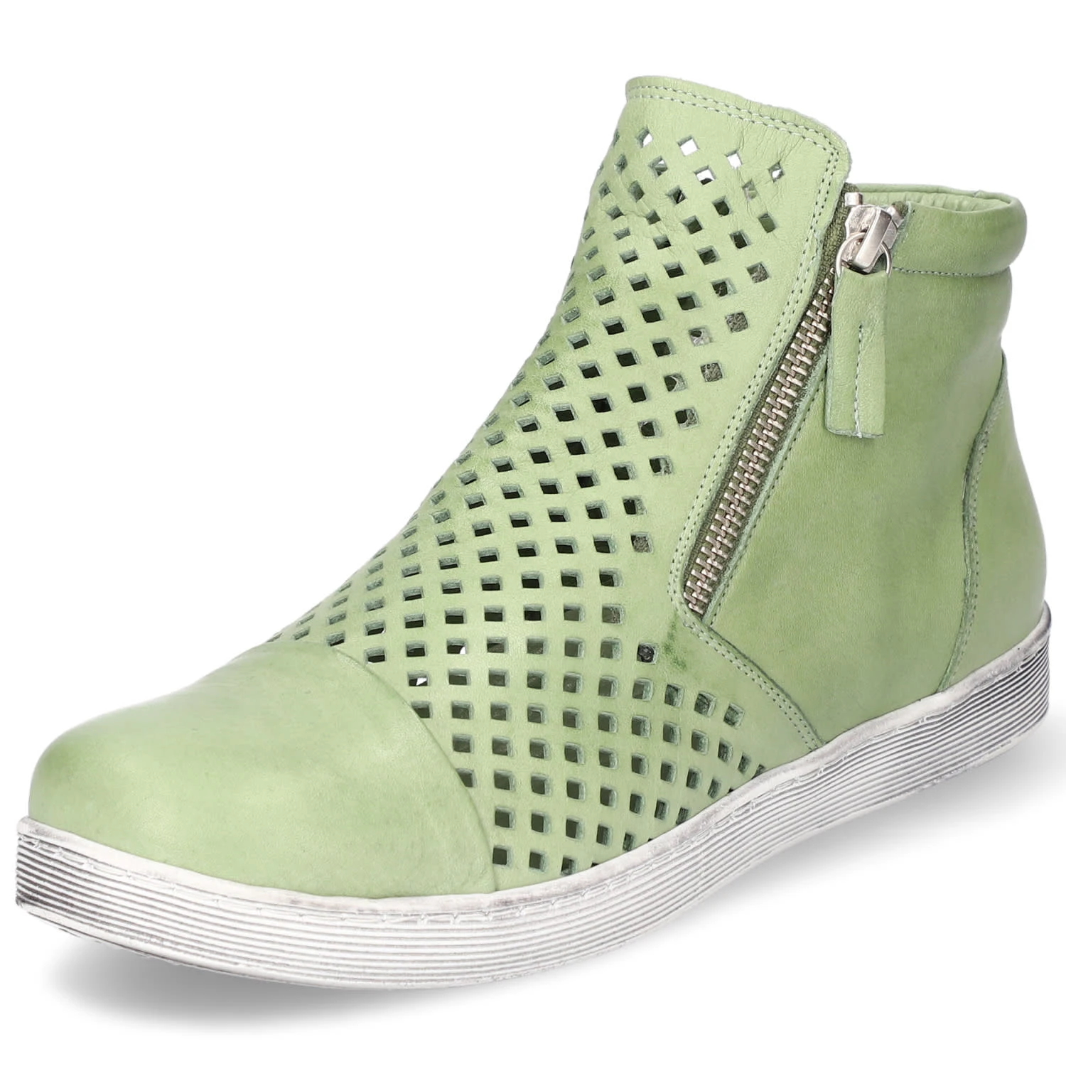 Andrea Conti Damen Stiefeletten Grün Leder – 2 praktische Reißverschlüsse – Obermaterial teils mit Lochstanzmuster - verstärkter Zehen- und Fersenbereich - gepolsterte und herausnehmbare Leder-Decksohle - profilierte Laufsohle mit rutschhemmenden Eigenschaften in Used Look