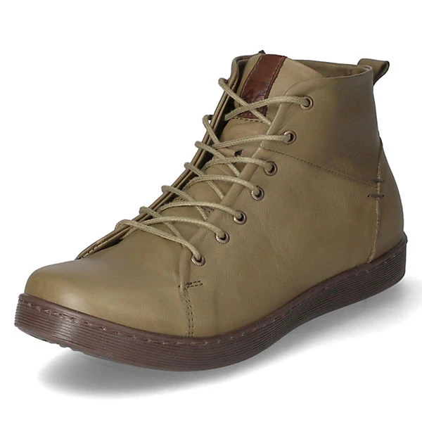 Andrea Conti Damen Schnür-Stiefeletten Grün Glattleder – Schnürsenkel und Reißverschluss – Zunge im oberen Teil gepolstert – gepolsterte Lederdecksohle – versztärkte Ferse – flexible, rutschhemmende Laufsohle – Anziehlasche